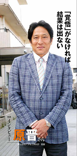「私は『日本の陸上界を変えたい』という大義を持って青学の監督に就任しました。“原はメディアに出過ぎだ”、“しゃべり過ぎだ”とよく言われますが、駅伝が注目されることで、私のように駅伝に憧れる子どもが現れ、陸上競技人口が増えたり、駅伝を応援する人が増えれば、計り知れない経済効果をもたらすことができるはずです。私は、野球やサッカーのようにスポーツ紙の1面を陸上ニュースが飾り、日本中で陸上を楽しむ人を増やしていきたいのです」。