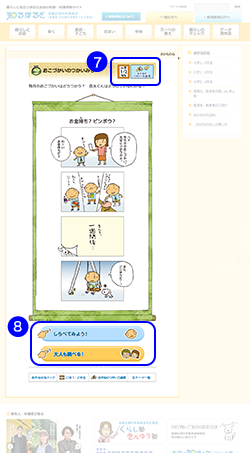 8子どもは「しらべてみよう!」ボタンをクリックしてください。大人向けの解説をすぐに見る場合は、「大人も調べる!」ボタンをクリックします。保護者の方も「しらべてみよう!」からアクセスすることをおすすめします。