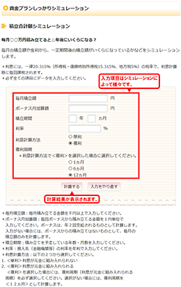 - シミュレーション実行後は、入力画面にデータは残りませんのでご了承ください。