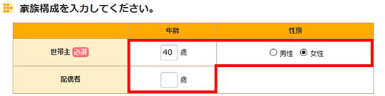 - 家族構成では、配偶者E子さんを世帯主として、シミュレーションします。