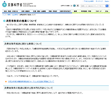 大学等及び社会教育における指針(基本的な考え方)、調査研究結果、親子向け教材、実践手引き、文科省主催「消費者教育フェスタ」の概要など、主に大学や社会教育における消費者教育に関する情報を掲載しています。