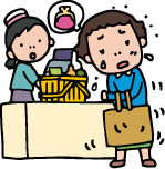 代金が値札と違っていたり、お店の人が商品の数やおつりをかんちがいすることがあるかもしれません。商品やおつりを受けとったらその場でまちがいがないか確かめましょう。もしまちがいに気づいたら、すぐに「2個じゃなくて3個です」、「おつりが50円足りません」というように、はっきりと言葉にしてお店の人に伝えます。