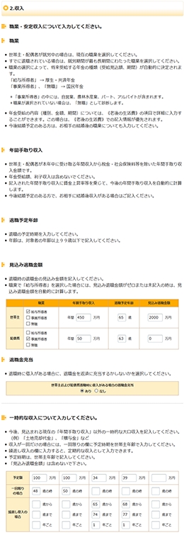 選択した職業は、定例収入の推計や年金収入の自動計算に影響します。 -