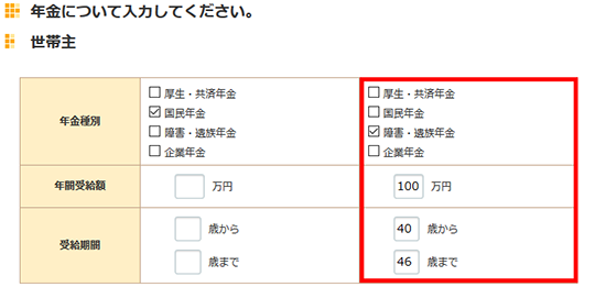 - 遺族年金の受取は、「年金項目の障害・遺族年金」項目を利用します。