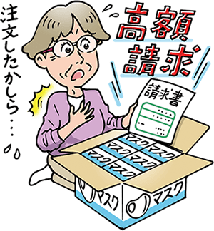 マスクなど新型コロナによって品不足になった商品を勝手に送り付けて、高額な代金を請求します。
