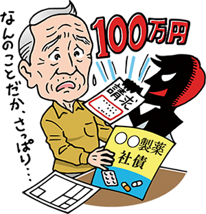 覚えがないので放置していると、その製薬会社の社員を名乗る男から電話があり、100万円分の社債を購入したことになっているので支払うよう言われた。
