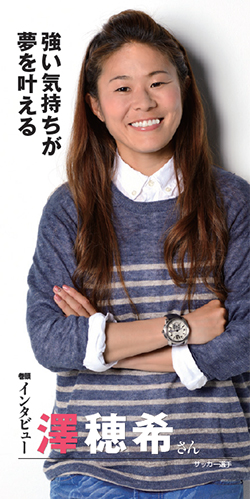 前向きでポジティブな考えをするように心がけ、信じて続けることを「力」に変え、自分をいつも、「できるよ!」と激励しながらいろいろなことを成し遂げてきた澤さん。 澤さんはサッカーを通じて、人間的にも大きく成長し、今では多くの女性や後輩たちが憧れる存在になっています。
