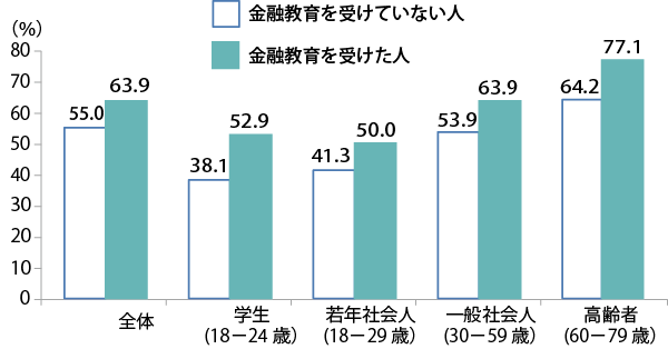 | 金融教育を受けた人 | 63.9 | 52.9 | 50.0 | 63.9 | 77.1 |
