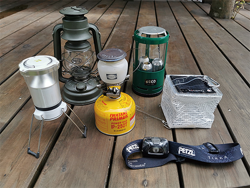 メインの照明は電池、ソーラー、ガス、灯油など、使いやすいものならどれでもよいと思います。