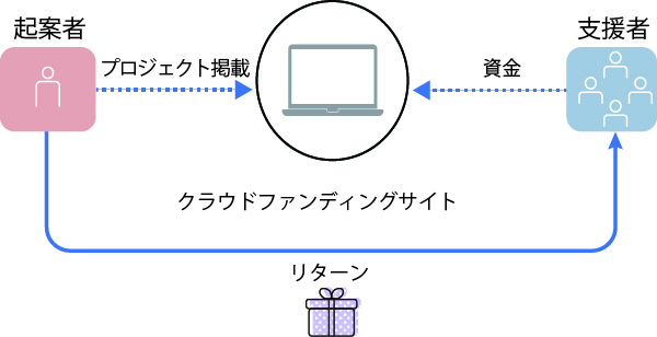 クラウドファンディングとは、群衆(Crowd)と資金調達(Funding)を組み合わせた造語で、インターネットを通して自分の活動や夢を発信することで、想いに共感した人や活動を応援したいと思ってくれる人から資金を募る仕組みです。