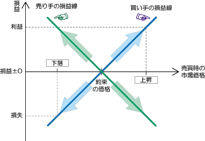 買い手、売り手、それぞれの先物取引の損益を図で確認してみましょう。