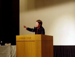 日米の金融教育やお金に関する躾の考え方の違いについて、ご自身の経験をもとに楽しくわかり易くご講演。アメリカでは、子どもに家の手伝いやアルバイトを通じて「お金はもらうものではなく、汗をかいて働いて稼ぐもの」という躾をすること、そうして得たお金だからこそ子どもの頃から「お金の使い方」をよく考える習慣がつくこと、高校生になったら生活学(Marriage & Life)の授業があることなどをご紹介。一方、日本では、何もしなくても「おこづかい」がもらえたり、社会人になるまでは学業に専念してお金のことは考えさせないという家庭が多いことに驚いたと。そして、「お金の魅力」は、生活がいきいき楽しくなるように使うことによって引き出されるという考え方を、楽しいお話の中で教えて下さいました。