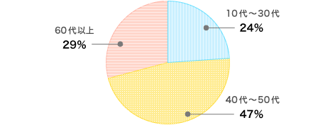 | 10代~30代 | 40代~50代 | 60代以上 | 合計 |
