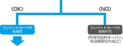 ![OKの場合:クレジットカードの利用可→(5)へ。NGの場合:クレジットカードの利用不可[利用可能額オーバー、有効期限切れなど]](../../images/credit/2912_04.png)