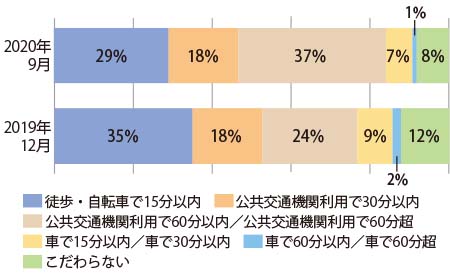 コロナ禍以前は勤務先からの通勤時間を重視する人が多くいましたが、在宅でのテレワークが普及し家で過ごす時間が大幅に増えたことで、「職住近接」の志向が弱まっています【図表6】脚注6。