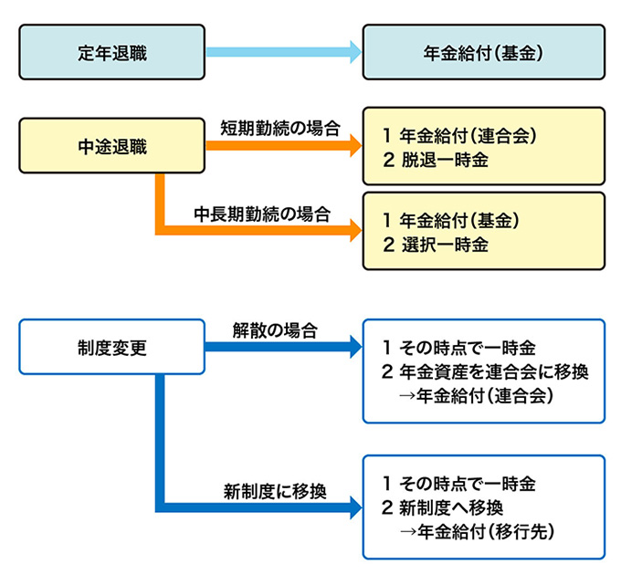 厚生年金基金の受け取り方法とその手続きは、退職のパターンによって次のようになります。