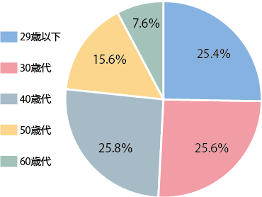 起業に関心がある人の年齢分布を見ると、29歳以下25.4%、30歳代25.6%、40歳代25.8%と、40歳代以下が全体の4分の3を占めています【図表1】。
