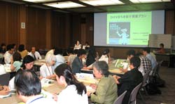 第2回「金融に関する消費者教育セミナー」、第1日目の分科会(1)では、東京都立文京高校の阿部智子先生の進行で、実践事例報告および課題提示として「生徒のひとり立ちを促す授業プラン」(新潟県立小千谷高校・池山純子先生、新潟県立見附高校・渡邊祐子先生)と、「多重債務を未然に防止する授業プラン」(城西国際大学講師・阿部信太郎先生)が発表され、その後全国から参加された先生方によるワークショップが開かれた。