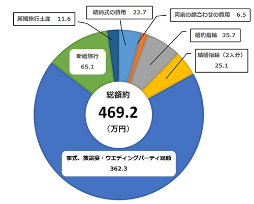 ただしこれはあくまでも挙式などにかかる費用で、結婚全般にかかる費用はさらに増え、総額では460万円を超える大変な高額となっています。