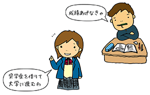 例えば、大学生の約3人に1人は、日本学生支援機構の「貸与型奨学金」(有利子のものと無利子のものがあります)を借りる、または「給付型奨学金」(返還不要)の給付を受けています。同機構のホームページからは、大学や地方公共団体等が行っている奨学金(給付型を含む)や授業料減免制度等も簡単に検索できます。基準(家計収入、成績等)を調べ、本人にも高校入学時から成績基準などを“目標”として意識させましょう。