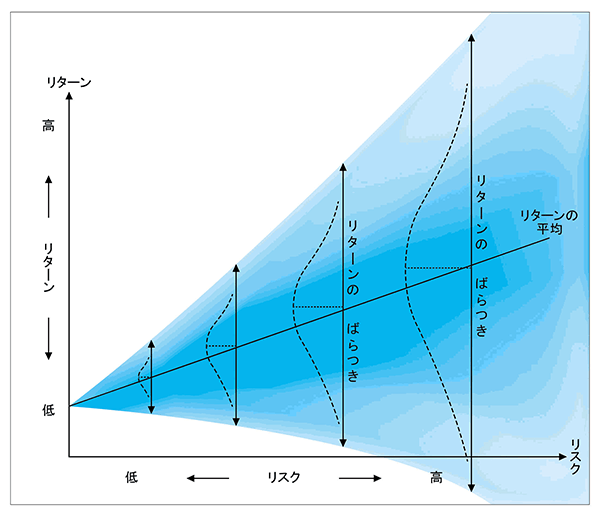 リスクとリターンの間には、一般に、「高いリターンを得ようとすると、リスクも高まる」(ハイリスク・ハイリターン)、「リスクを低く抑えようとすると、リターンも低下する」(ローリスク・ローリターン)という関係があります。