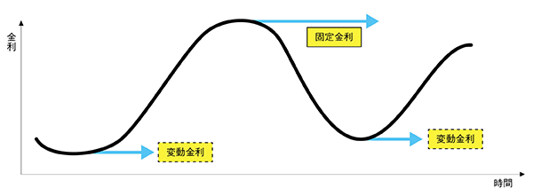 お金を預貯金などの金利型商品で運用脚注10する場合、金利が高いときには固定金利(期間の長い預貯金など)、低いときには変動金利に近い形(期間の短い預貯金など)で運用することが考えられます。