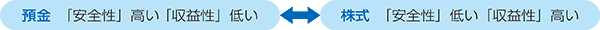 分散は、有効な方法です。たとえば、預金(安全性が高く、収益性は低い)と株式(安全性が低く、収益性は高い)にお金を分散し、その割合を調整すれば、「安全性」と「収益性」のバランスをとり、自分の希望に合ったものにできます。