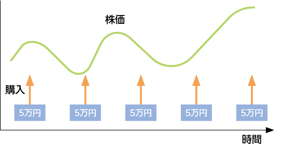 定期的に定額を投資すれば、株価が高いときには少なめ、安いときには多めの数量を買うことになり、平均購入価格が下がりやすくなります。