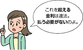 - 「ヤミ金融」・・・「10日で1割(トイチ)」、「10日で5割(トゴ)」などの金利で貸します(年利では365%、1825%)。これは犯罪です。暴力的な取り立ても行われ、家族などにも被害が及びます。ヤミ金融には決して近づくべきではありません!