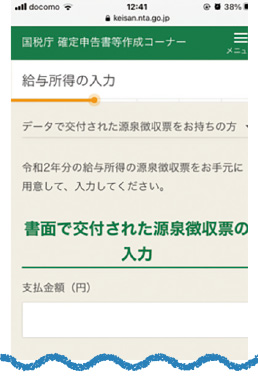 ※令和4年1月からスマホのカメラで撮った徴収票の読み取りで自動入力が可能になりました。