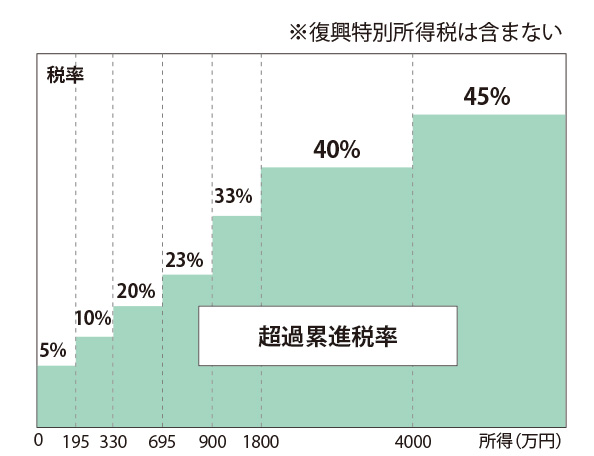 A2. 「超過累進課税制度」のため、年収が高いほど、税率も高くなります