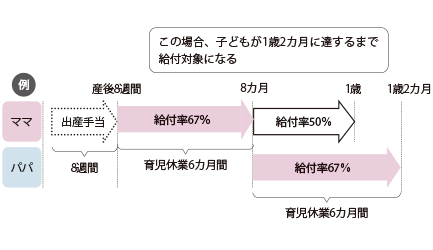 また、育休は通常1人の子どもにつき1回までですが、父親が子どもの出生後8週間以内に育休を取得・終了した場合、「パパ休暇制度」により、特別な事情がなくても育休を再度取得することができます(2回目の育休も給付金の支給対象)。