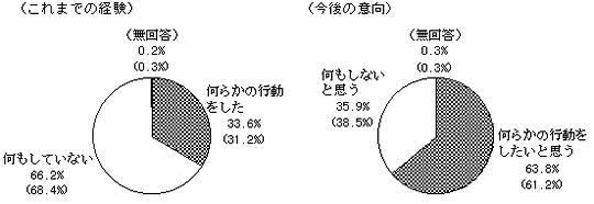 両者の関係をみると、これまで「何もしていない」世帯では、今後「何らかの行動をしたい」と考えているのは約半分であるのに対し、すでに「何らかの行動をした」世帯については、その大半が今後も「何らかの行動をしたい」と思っている。